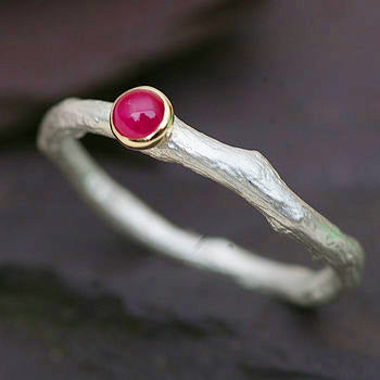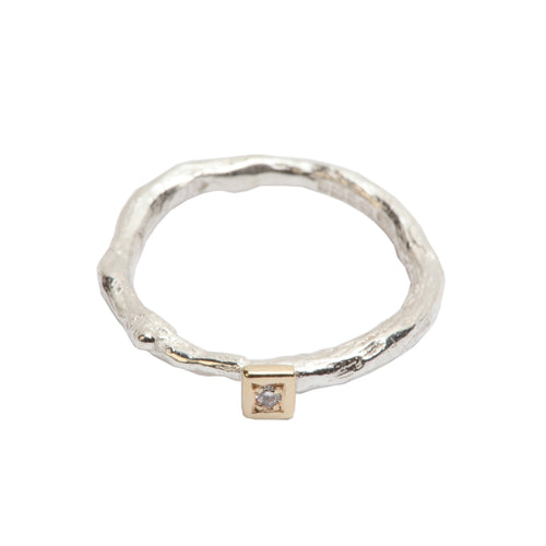 Silver and Gold Rose Root Ring, with a Small Diamond.