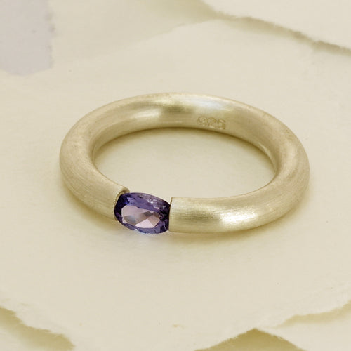Tanzanite Gemstone In A Satin Silver Band