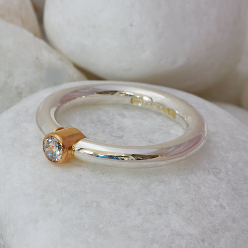 Sterling Silver Ring Set With A Diamond in a Gold Setting